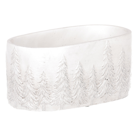 Obal betonový - truhlík, motiv stromku, bílo-stříbrné.