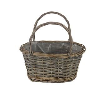 Košík s plastem.Rozměry : 25 × 16 cm, výška 13 cm, celková výška s uchy 25 cm.Barva : šedá.Materiál : proutí, plast. prečítať celé