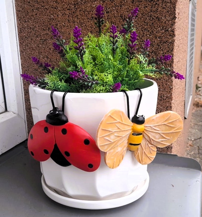 Beruška + motýl závěs na květináč
