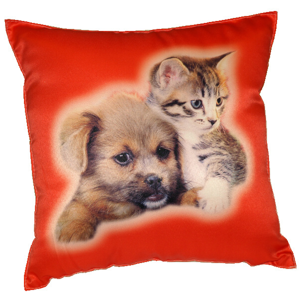 Rozměr: 40 x 40 cm. Dezén: Kotě a pes na červeném. Povlakový materiál: 50% bavlna, 50% Polyester. Náplň: 100% Polyester (duté vlákno ve tvaru kuliček). Polštářek je vhodný i pro alergiky, lze prát celý v pračce. Doporučená teplota praní 40°C. Kvalitní fototisk Vám umožní opakované praní bez...