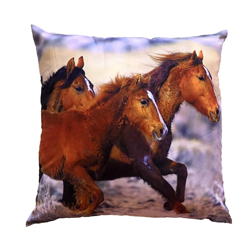 Rozměr: 40 x 40 cm. Dezén: Tři koně. Povlakový materiál: 50% bavlna, 50% Polyester. Náplň: 100% Polyester (duté vlákno ve tvaru kuliček). Polštářek je vhodný i pro alergiky, lze prát celý v pračce. Doporučená teplota praní 40°C. Kvalitní fototisk Vám umožní opakované praní bez změny sytosti...