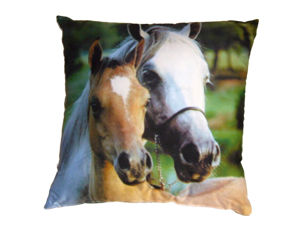 Rozměr: 40 x 40 cm. Dezén: Koně. Povlakový materiál: 50% bavlna, 50% Polyester. Náplň: 100% Polyester (duté vlákno ve tvaru kuliček). Polštářek je vhodný i pro alergiky, lze prát celý v pračce. Doporučená teplota praní 40°C. Kvalitní fototisk Vám umožní opakované praní bez změny sytosti barev.