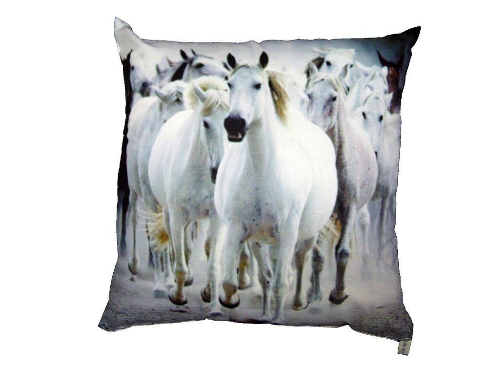 Rozměr: 40 x 40 cm. Dezén: Stádo bílých koní. Povlakový materiál: 50% bavlna, 50% Polyester. Náplň: 100% Polyester (duté vlákno ve tvaru kuliček). Polštářek je vhodný i pro alergiky, lze prát celý v pračce. Doporučená teplota praní 40°C. Kvalitní fototisk Vám umožní opakované praní bez změny...
