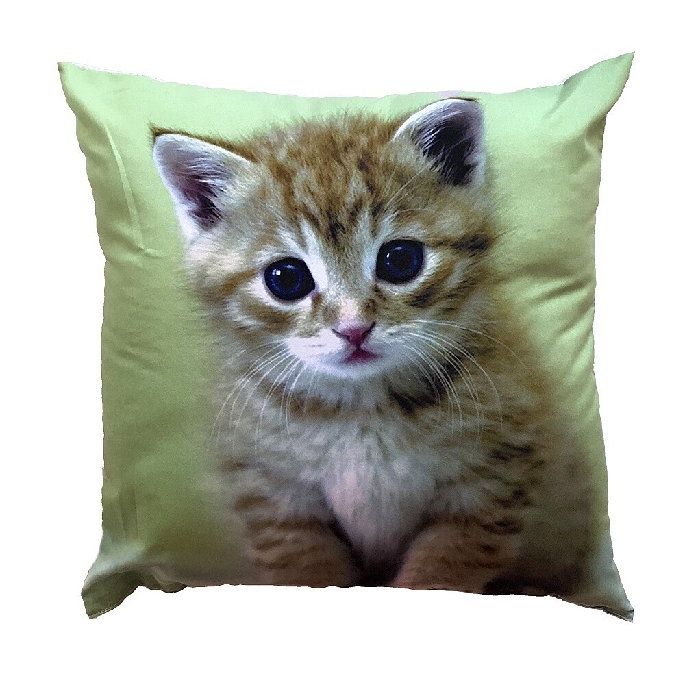 Rozměr: 40 x 40 cm. Dezén: Kotě na zeleném. Povlakový materiál: 50% bavlna, 50% Polyester. Náplň: 100% Polyester (duté vlákno ve tvaru kuliček). Polštářek je vhodný i pro alergiky, lze prát celý v pračce. Doporučená teplota praní 40°C. Kvalitní fototisk Vám umožní opakované praní bez změny...