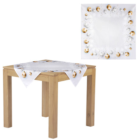 Ubrus s vánočním motivem, vánoční ozdoby na bílém podkladu, 80x80 cm,100 % polye