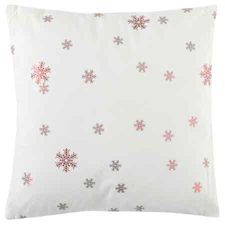 Polštář s výplní, samet. Vánoční motiv, červené vločky na bílém podkladu. 45x