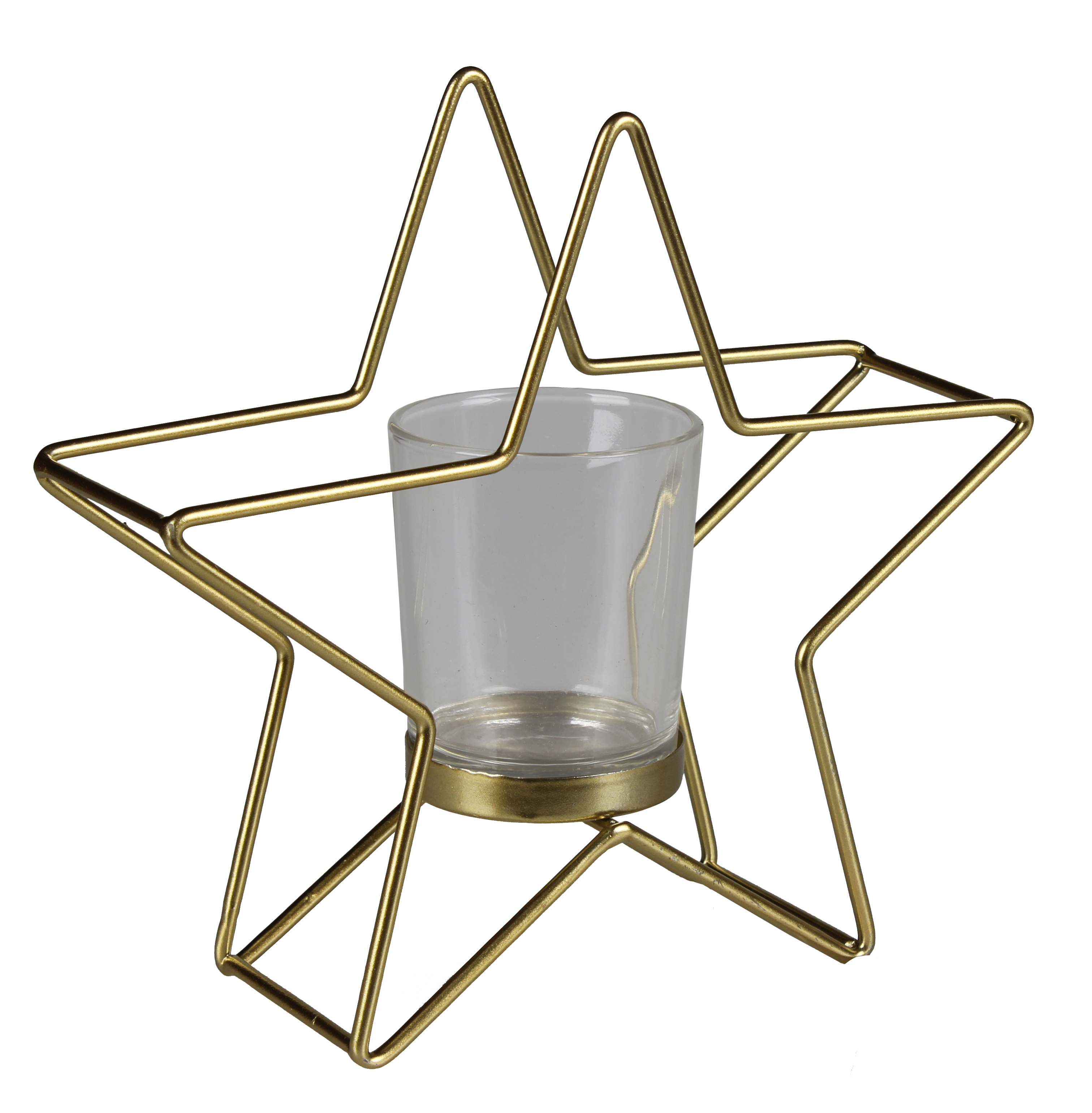 Kovový dekorační svícen na čajovou svíčku STJERN zlatá 16,5x5,5x16 cm Mybesthome