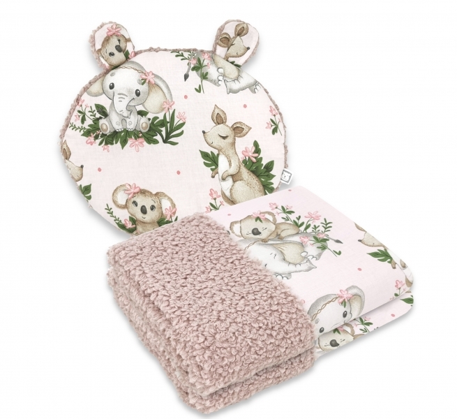 2-dílná sada do kočárku s oušky, bavlna + Beránek 100x70 cm, Skippy - růžová