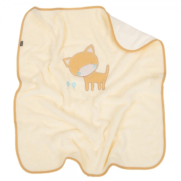 Oboustranná chlupáčková dečka s vyšívkou 75 x 90 cm, Kočička, ecru