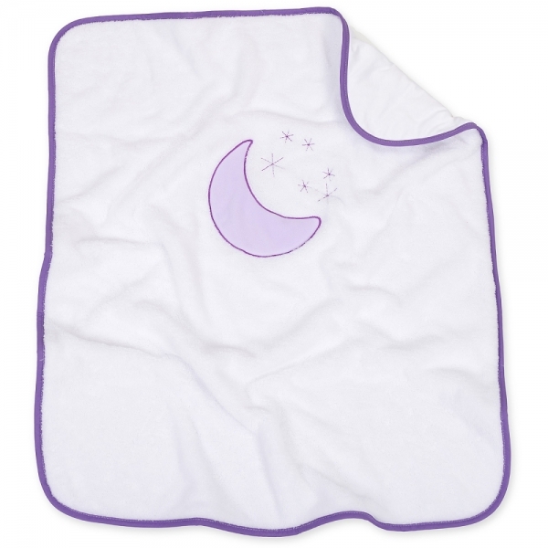 Oboustranná chlupáčková dečka s vyšívkou 75 x 90 cm, Měsíček, bílá/fialová