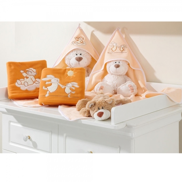 Polárová dečka s vyšívkou 80 x 95 cm, Zajíčci - oranžová