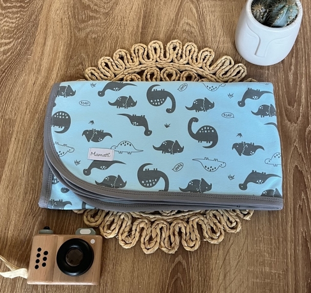 Dětská oboustranná bavlněná deka, Mamatti 80 x 90 cm, Dino park - modrá s potiskem
