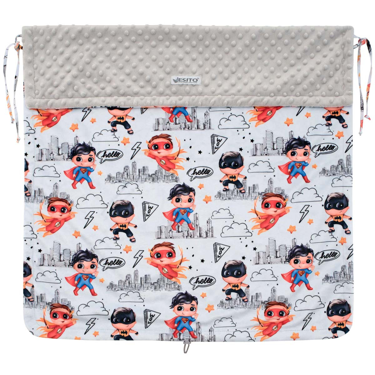 Popis: - Nepadací deka je vyrobena ze dvou vrstev. 1. strana z jemného saténové bavlny s potiskem, 2. strana z klasického minky s "bublinami". - Nepadací deka má v horní části dvě poutka a u každého poutka tkaničku na bezproblémové uvázání na kočárek. - Spodní část nepadací deky je opatřena...