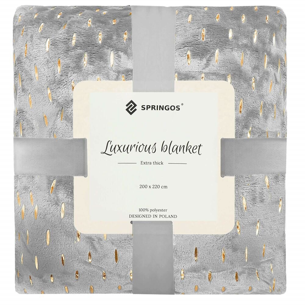Oboustranná deka SPRINGOS EMBER je elegantní a praktický doplněk do vašeho domova. Jedna strana deky je plyšová se zlatým vzorem, zatímco druhá strana je hladká, bez potisku. Deka je měkká, hřejivá a hebká na dotek. Nevyžaduje žehlení a lze ji využít nejen jako deku, ale i jako přehoz. Je krásně...