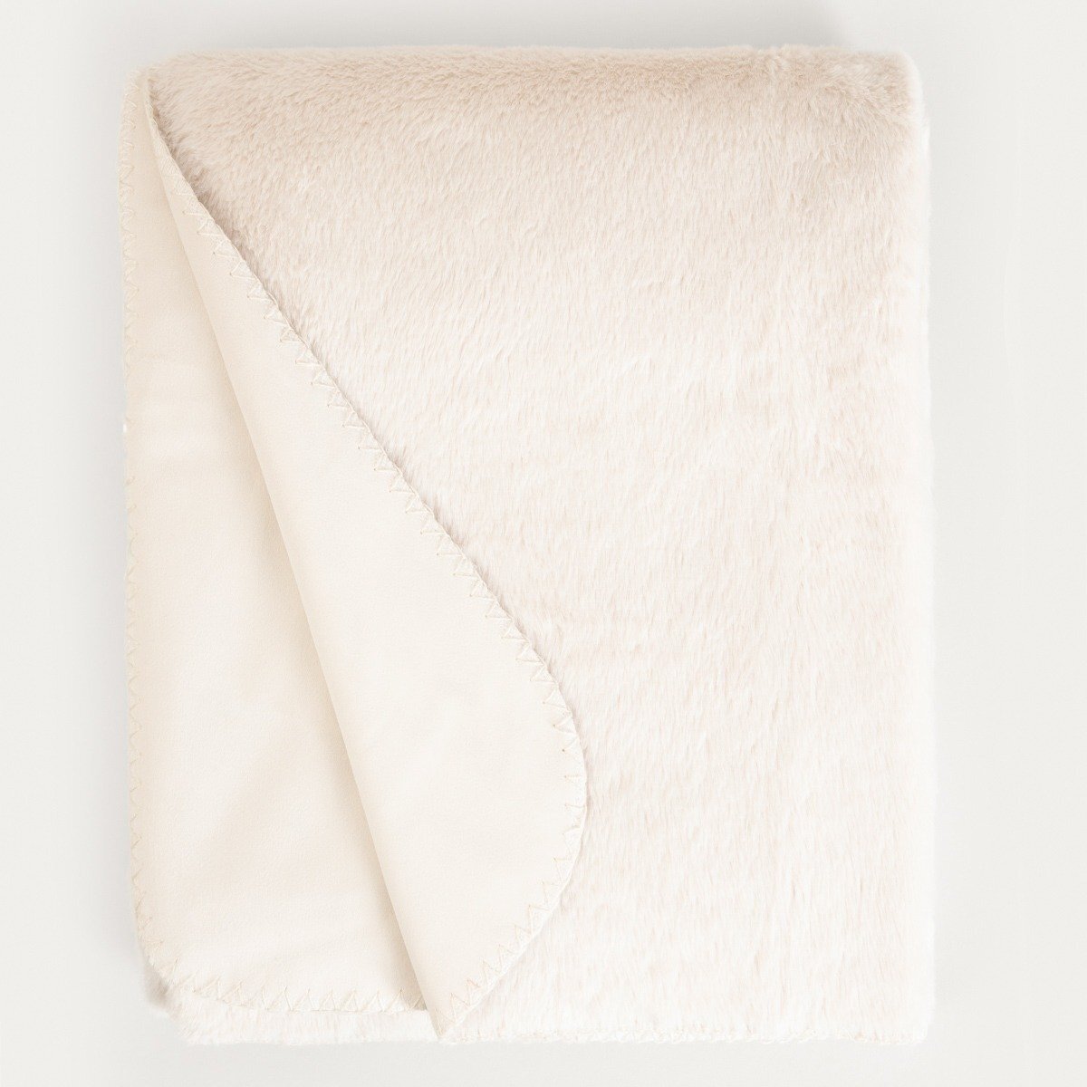 Koc | NEW CLUMSY | z imitacji króliczego futra beżowy | 150x200 cm | 750595