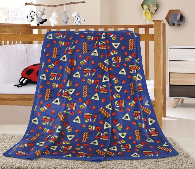ELLA dětská přikrývka - staveniště - tmavě modrá - 75x100 cm