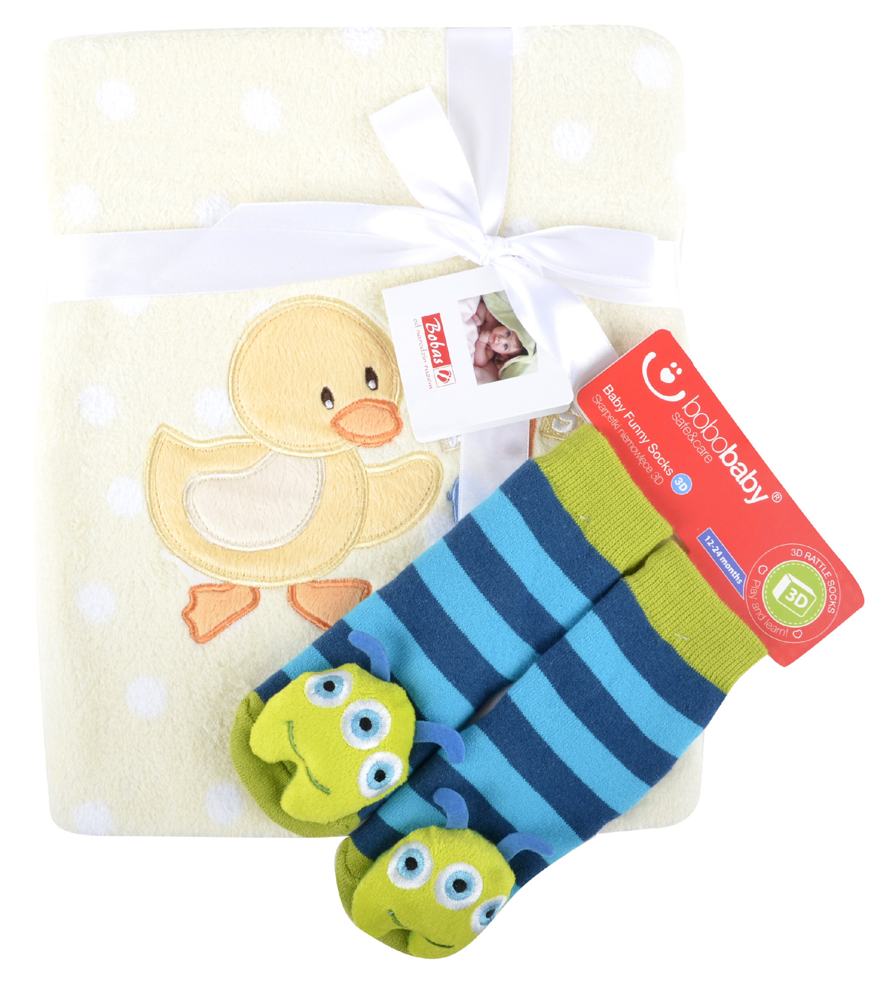 Dětská deka s aplikací LUCKA s dárkem žlutá - kačenka A 76x102 cm Bobobaby