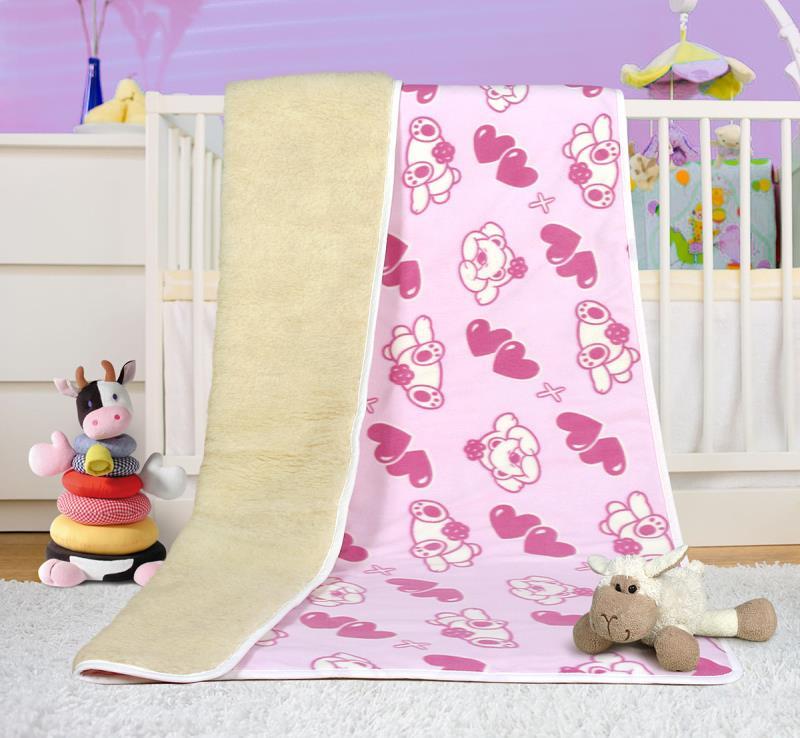 Evropské merino deka dětská bílá s růžovým povrchem - deka medvídek růžový - 100x150 cm