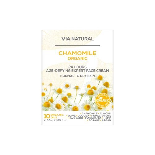 Pleťový krém proti stárnutí pleti s bio Heřmánkem Via natural 50mlPleťový krém proti stárnutí obsahuje kromě výtažku z organického heřmánku i velmi účinnou kombinaci olejů – mandlový, olivový, jojobový, avokádový, makadamiový, arganový, konopný, olej z granátového jablka a brutnáku lékařského....