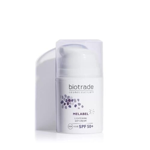 Zesvětlující denní krém na pleť s SPF 50+ Melabel Biotrade 50mlDenní krém určený k zesvětlení tmavých skvrn na pokožce, jako jsou spáleniny od slunce, stařecké skvrny, skvrny po těhotenství, akné a hormonální terapii, jizvičky.Poskytuje širokospektrální UVA/UVB ochranu s SPF 50+, která chrání...