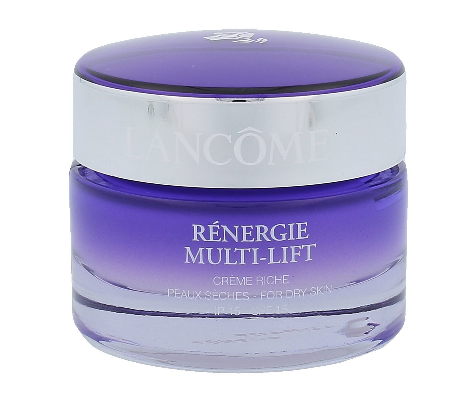 Denní liftingový krém Lancome Renergie Multi Lift Creme Riche zpevňuje a zjemňuje pleť, zároveň obnovuje obličejové kontury. Zanechává pleť pevnější, vypnutější a hydratovanou. Eliminuje jemné vrásky.