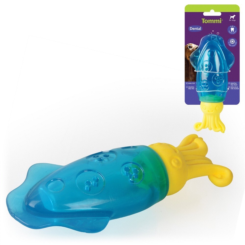 Kousací hračka ve tvaru olihně, kterou je možné naplnit vodou a vychladit nebo zamrazit. Hračka je vhodná do horkých letních dnů, kdy zajistí přijemné osvěžení pro vašeho pejska.• Hračka je plovoucí, je tedy vhodná k dovádění u vody