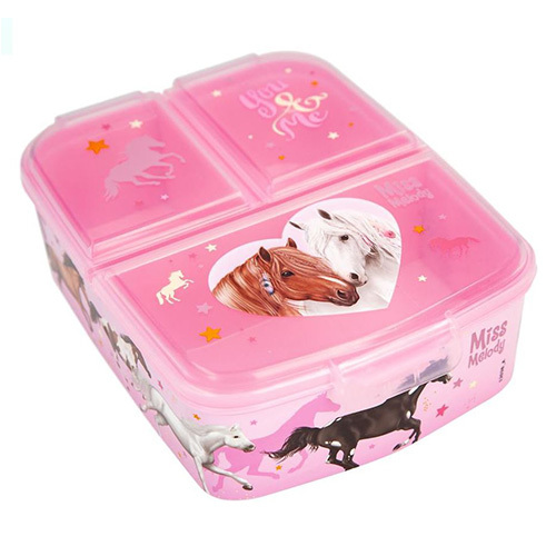 Olovrantový box Miss Melody, Ružový s motívom koní, 3 oddelené priehradky