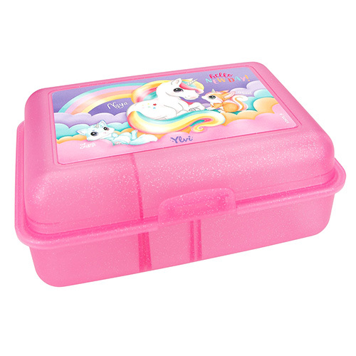 Svačinový box Ylvi, Růžový s flitry a dělící přepážkou