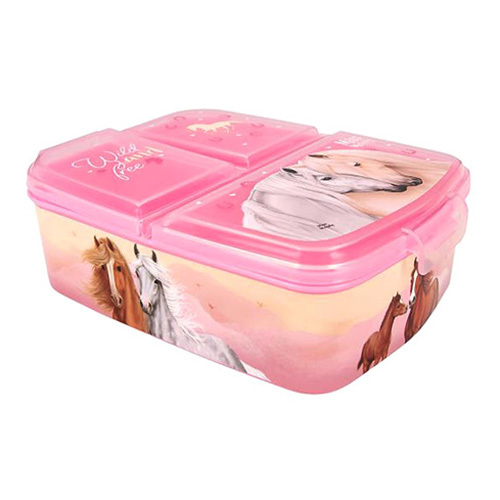 Svačinový box Miss Melody, Růžová + pastelové barvy, 3 oddělené přihrádky