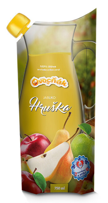 100% šťáva z ovoce, která je vyrobena z pečlivě vybraných plodů. Mošt je lisovaný za studena, aby se zachovalo co nejvíce z přírody. Do jednoho 750 ml balení je vylisováno 600 g jablek a 600 g hrušek. Je použita šetrná pasterace a nejsou přidány žádné další látky. Ovocňák obsahuje pouze přirozeně...