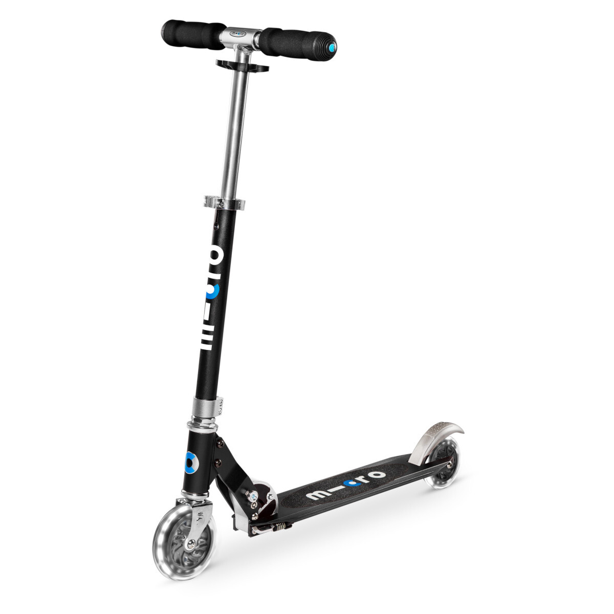 Dětská skládací koloběžka Sprite Black s LED kolečky. Koloběžka je v černé barvě a nabízí dobře ovladatelnou, lehkou a bezpečnou konstrukci s nízko posazenou deskou pro snadný odraz. prečítať celé