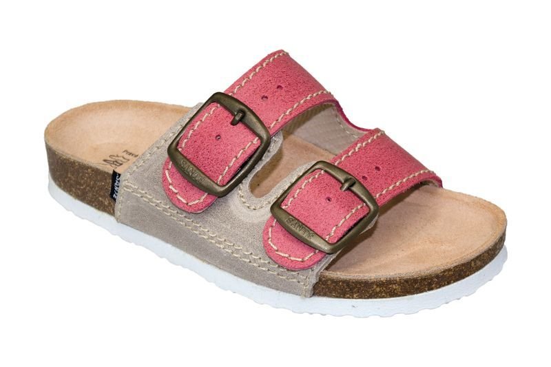 Zdravotní obuv - dětské pantofle,barva: růžová, šedá,podešev: bílá,stélka: anatomicky tvarovaná, kožená,materiál: kůže,přezky pro upravení velikosti,obuv podporující správný vývoj nohy. prečítať celé