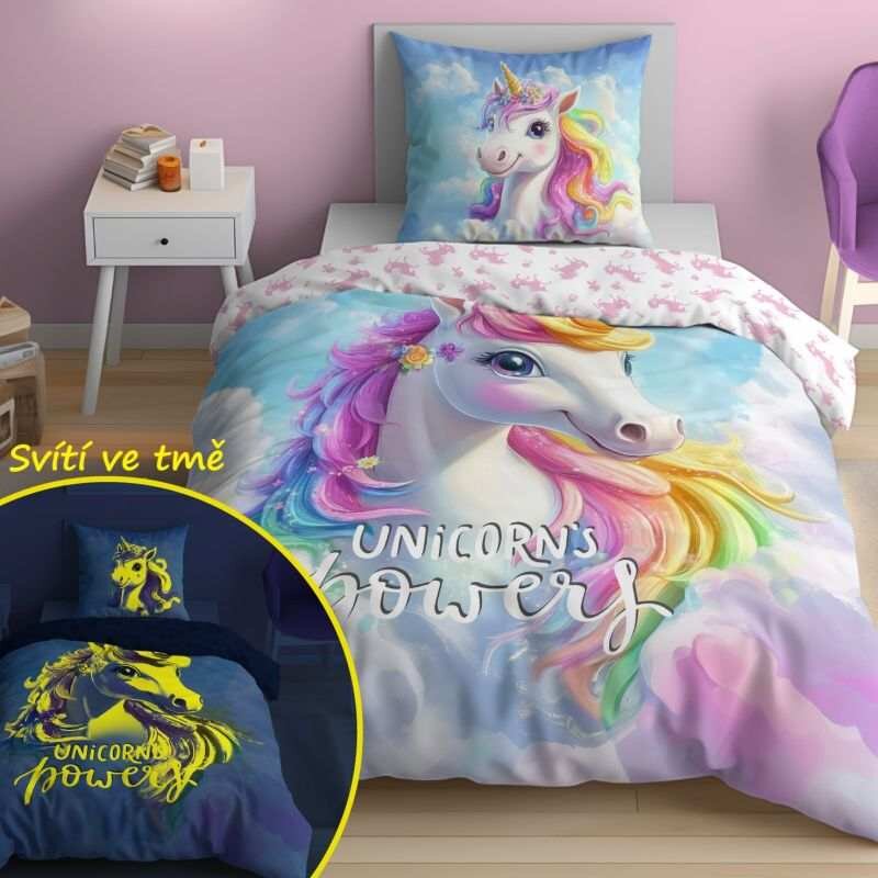 DETEXPOL Povlečení Jednorožec powery svítící 140/200, 70/80