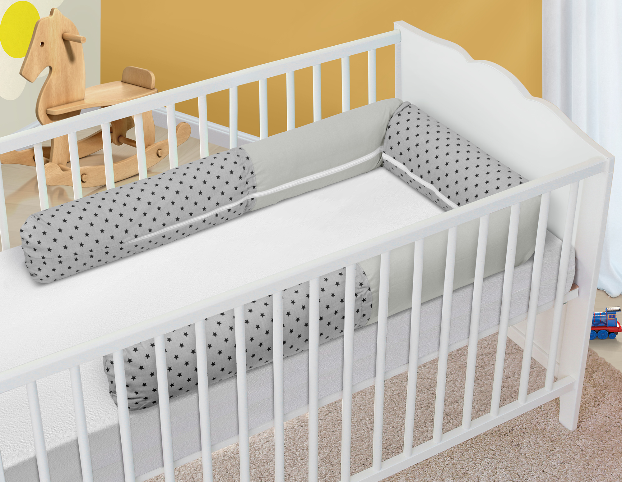 Mantinel do dětské postýlky - VÁLEC - hvězdičky - šedá - průměr 12x240 cm