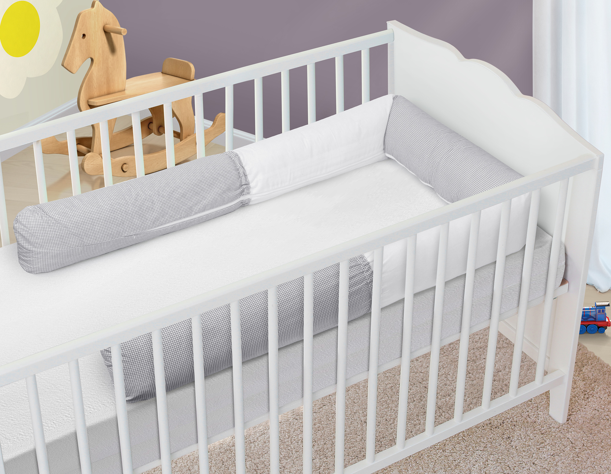 Mantinel do postýlky dlouhý 240 cm pro krásné a bezpečné sny.Mantinel má především funkci zabránit kontaktu dítěte s tvrdými částmi postýlky.