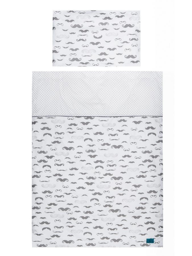 Dětská bavlněná 6-dílná souprava do postýlky Belisima Little Man pro miminka. Soupravu zdobí originální obrázký knírů a příjemné barvy. Je vyrobena z měkkého, příjemného materiálu. Souprava obsahuje povlečení na polštářek cca 40x60 cm, povlečení na peřinku cca 100x135 cm, mantinel cca 180 cm,...