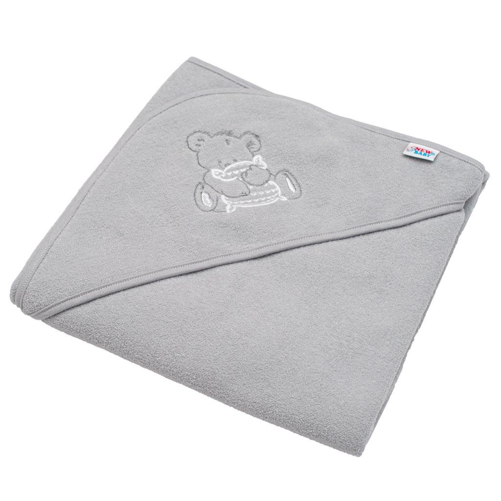 Detská froté osuška s výšivkou a kapucňou New Baby 80x80 sivá medveď