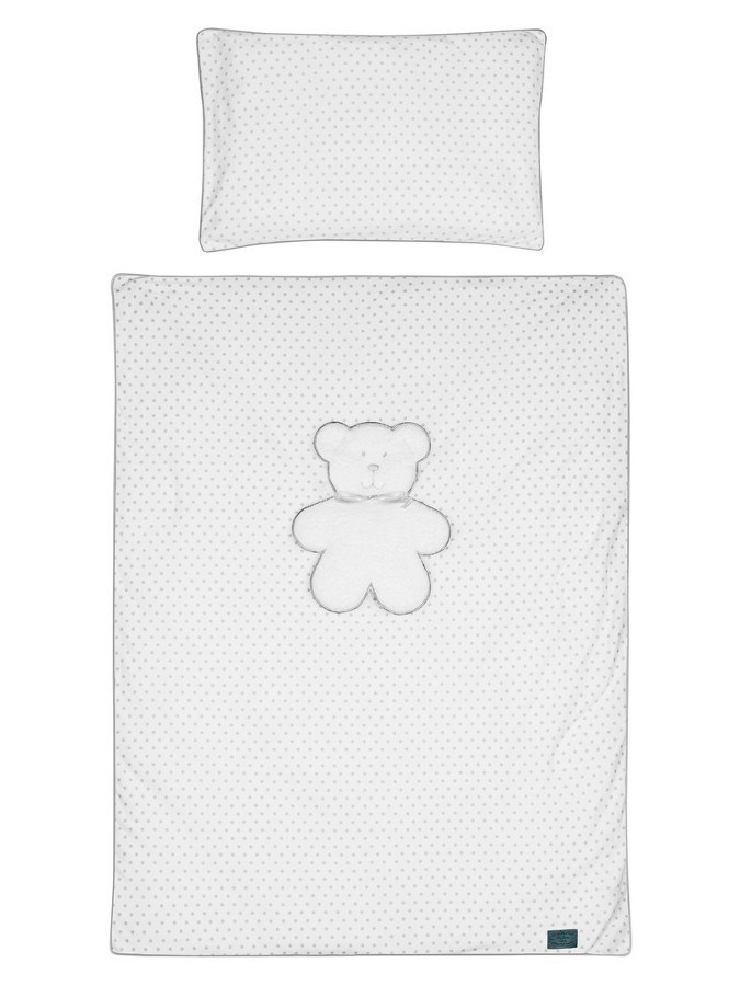 Krásná dětská bavlněná 2-dílná souprava do postýlky Belisima Bílý medvídek. Souprava je celopotištěná puntíky a zdobí ji roztomilý medvídek. Je vyrobena z měkkého, příjemného materiálu. Souprava obsahuje povlečení na polštářek cca 40x60 cm, povlečení na peřinku cca 90x120 cm. Materiál 100%...