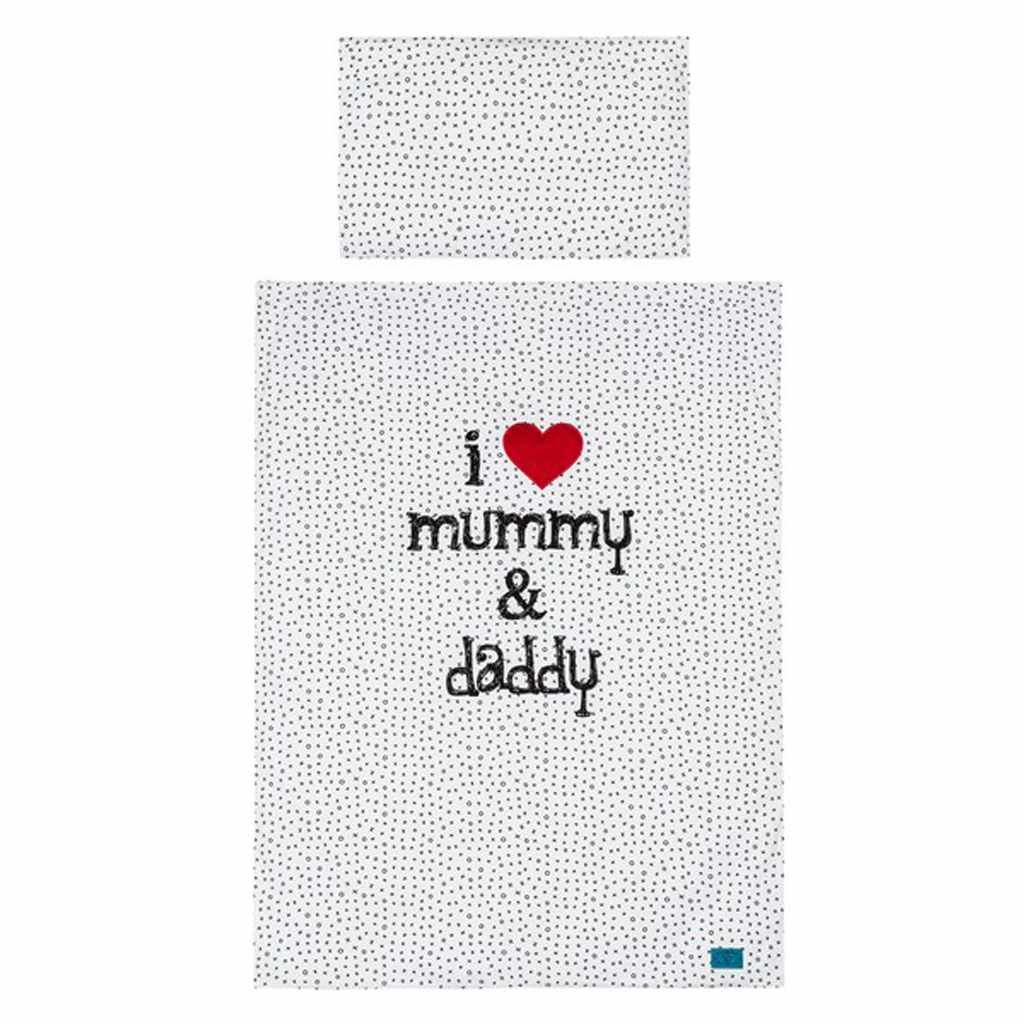 Dětská bavlněná 5-dílná souprava do postýlky Belisima I love pro miminka. Souprava je z jedné strany celopotištěná zajímavým vzorem a nápisem i love mummy and daddy. Je vyrobena z měkkého, příjemného materiálu. Souprava obsahuje povlečení na polštářek cca 40x60 cm, povlečení na peřinku cca...