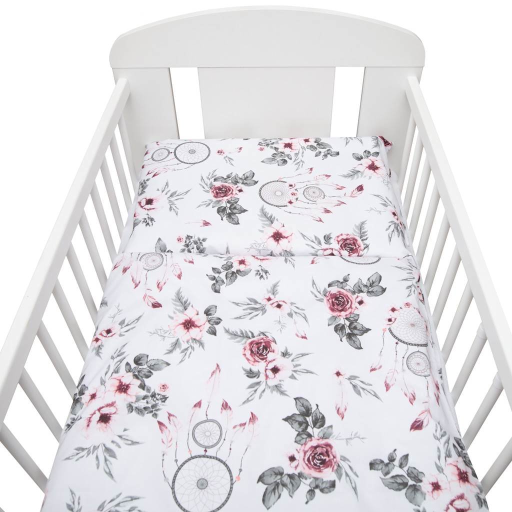 2-dílné ložní povlečení New Baby 100/135 cm bílé květy a pírka