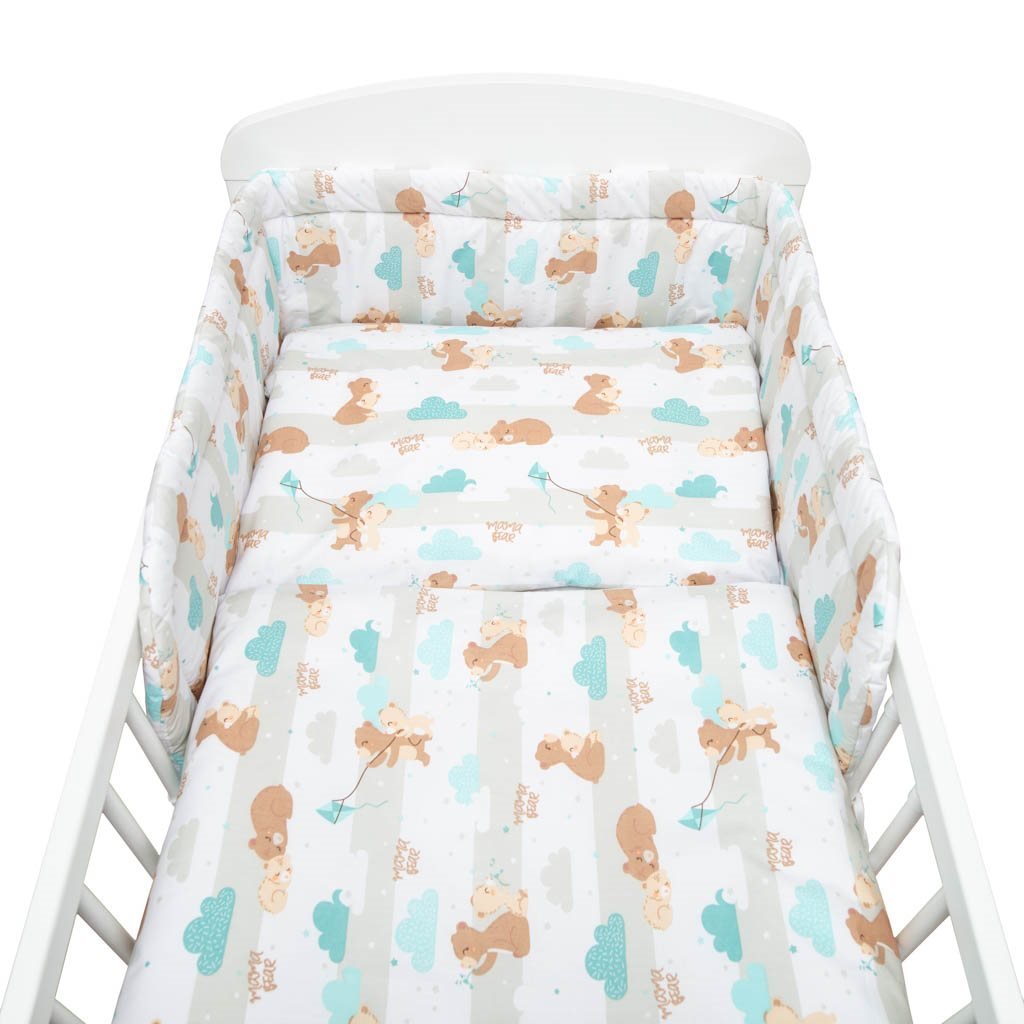 Dětská souprava do postýlky New Baby 2-dílná. Souprava je zdobena krásnými medvídky. Obsahuje povlečení na polštářek 40x60 cm + povlečení na peřinku 120x90 cm. Zipy používané u povlečení jsou tvz. "bezpečné zipy" bez volně visící koncovky. Materiál 100% bavlna. Produkt české značky.