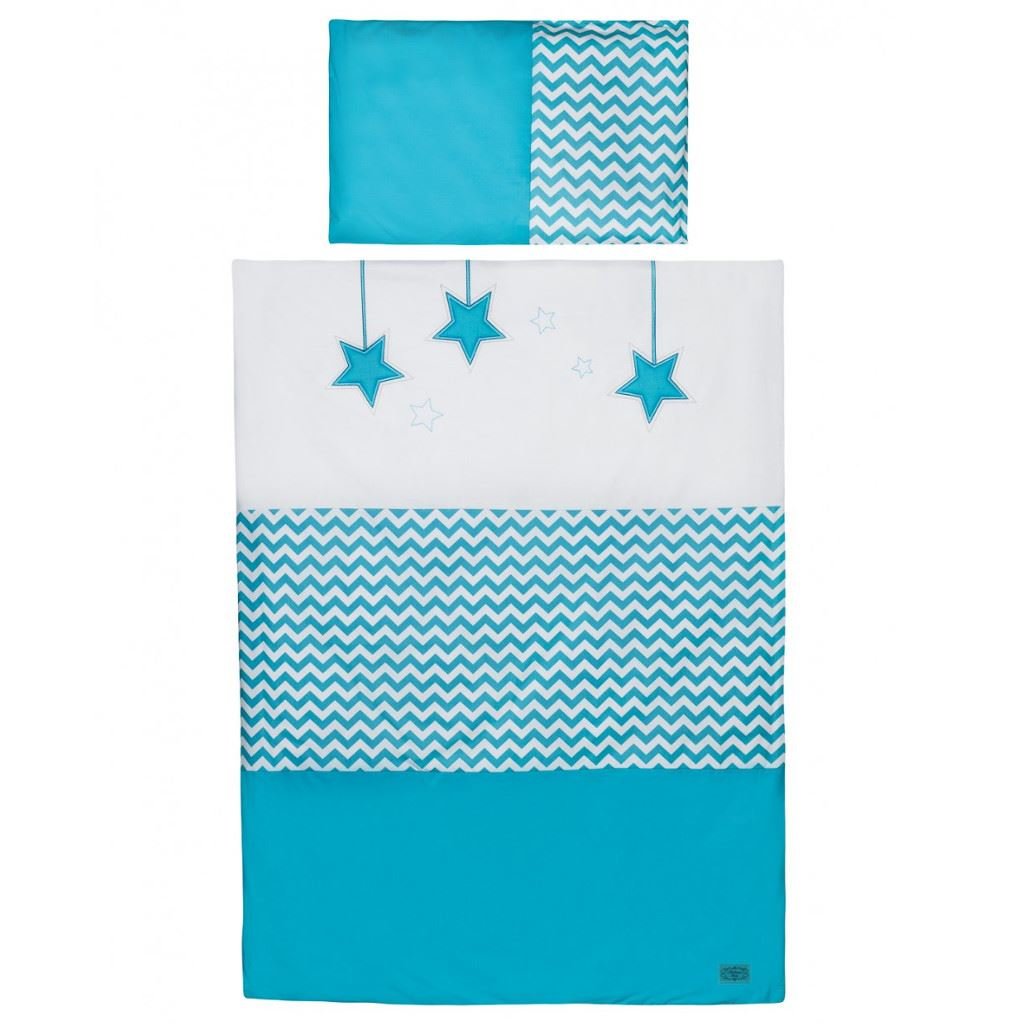 Bavlněná 2-dílná souprava do postýlky Belisima Hvězdička pro miminka. Souprava je zdobená hvězdičkami, zig zag vzorem a má příjemné barvy. Polštář je z jedné strany rozdělen na barevnou část a část se zyg zag vzorem, druhá strana je jednobarevná. Souprava obsahuje povlečení na polštářek cca 40x60 cm a povlečení na peřinku cca 100x135 cm. Materiál 100% bavlna.