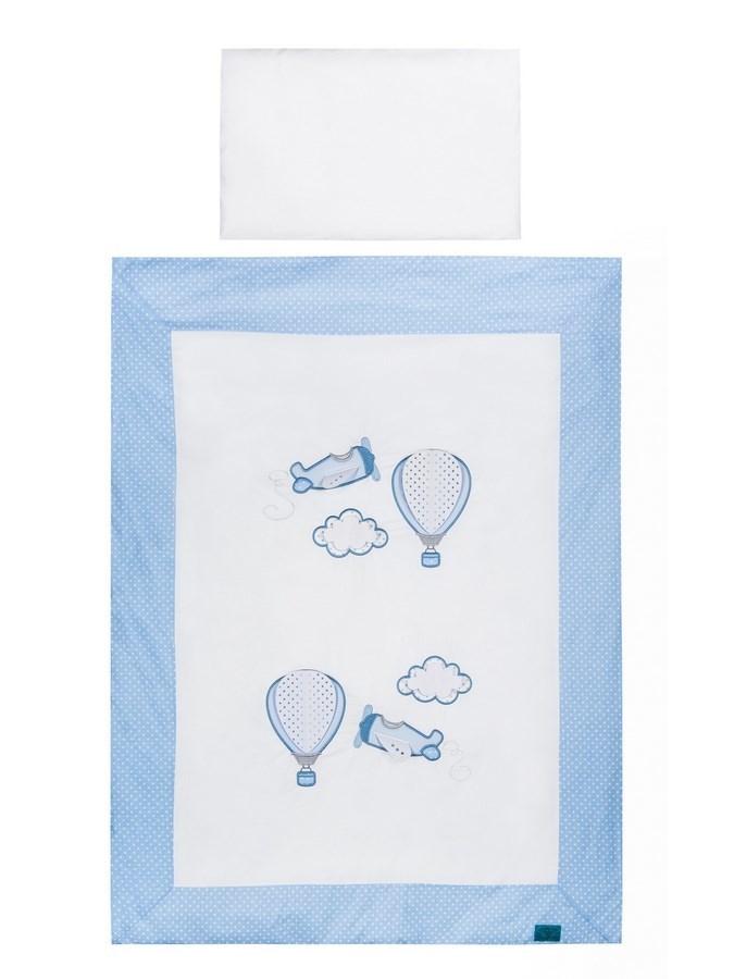 Dětská bavlněná 3-dílná souprava do postýlky Belisima Letadla pro miminka. Soupravu zdobí puntíky, 3D obrázek letadla, obrázek balónu a příjemné barvy. Je vyrobena z měkkého, příjemného materiálu. Polštář je jednobarevný. Souprava obsahuje povlečení na polštářek cca 40x60 cm, povlečení na peřinku...