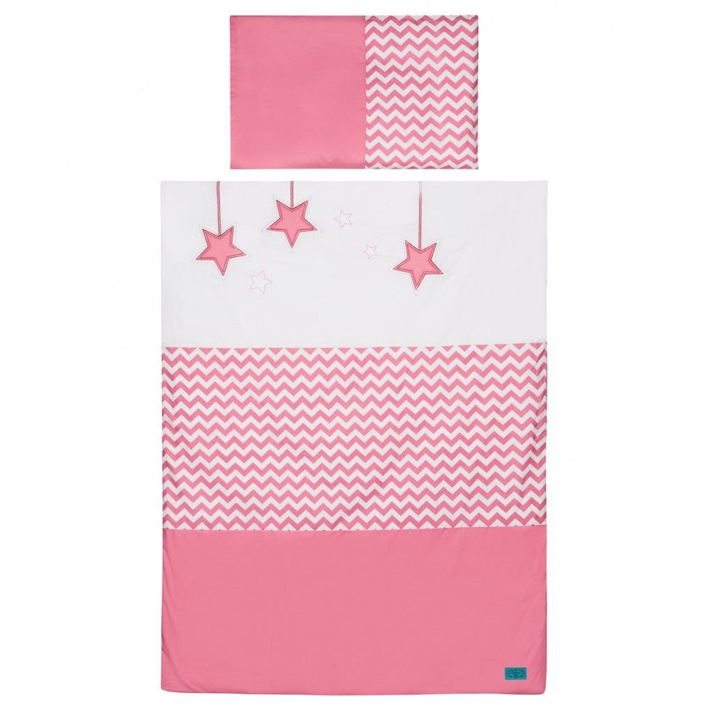 Bavlněná 2-dílná souprava do postýlky Belisima Hvězdička pro miminka. Souprava je zdobená hvězdičkami, zig zag vzorem a má příjemné barvy. Polštář je z jedné strany rozdělen na barevnou část a část se zyg zag vzorem, druhá strana je jednobarevná. Souprava obsahuje povlečení na polštářek cca 40x60 cm a povlečení na peřinku cca 100x135 cm. Materiál 100% bavlna.