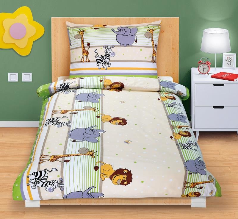 Povlečení bavlněné Junior - safari sv.zelená - dětský motiv - 140x200, 70x90 cm