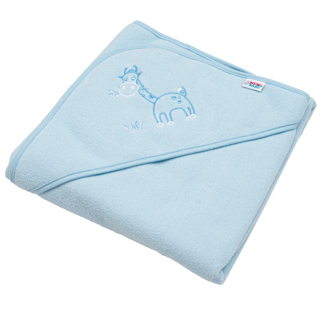 Detská froté osuška s výšivkou a kapucňou New Baby 80x80 modrá žirafka