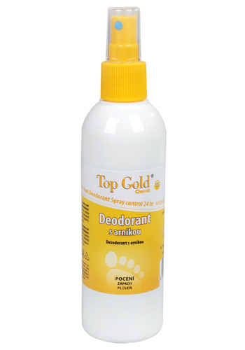 Deodorant s arnikou a Tea Tree Oil je velmi účinný deodorant - antiperspirant pro nohy s nadměrnou potivostí. Obsahuje bylinný komplex arnika - šalvěj - dubová kůra, který regeneruje pokožku nohou a snižuje jejich potivost, přísadu proti vysoušení pokožky, antimikrobiální složky s účinností proti bakteriím, kvasinkám a plísním (Tea Tree Oil) a deodorační přísady pohlcující zápach nohou okamžitě po aplikaci.