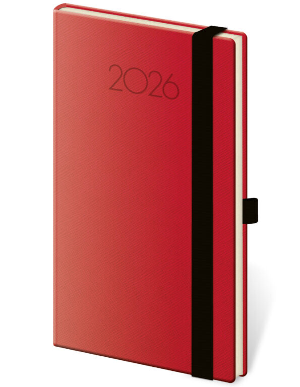 Diáře New Praga Diář je vyroben ze zajímavé matné koženky s nepravidelnou strukturou, navíc je doplněn o gumičku pro uzavření v kontrastní barvě. Vzhledem ke struktuře materiálu je vhodná pro sleporažbu bez fólie, nedoporučujeme však razit drobné texty, které mohou při ražbě zaniknout. Diář obsahuje: osobní údaje, plánovač dovolené (měsíční přehled), plánovací kalendář, mezinárodní svátky, roční výhled, týdenní layout, adresář