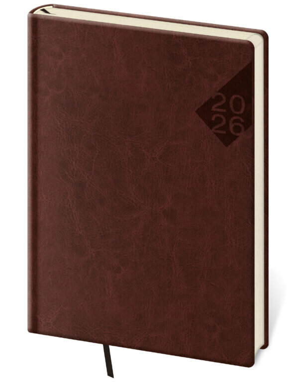 Diáře Nebresca Jde o vysoce kvalitní, na dotek příjemnou koženku, jež dokonale imituje kůži. Jedná se o lesklý materiál, do kterého se výborně razí bez fólie. Diář obsahuje: osobní údaje, plánovač dovolené (měsíční přehled), plánovací kalendář, telefonní předvolby, státní svátky České a...
