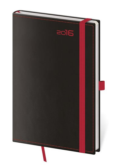 Diář 2016 - Black Red týdenní kapesní s gumičkou s poutkem na propisku